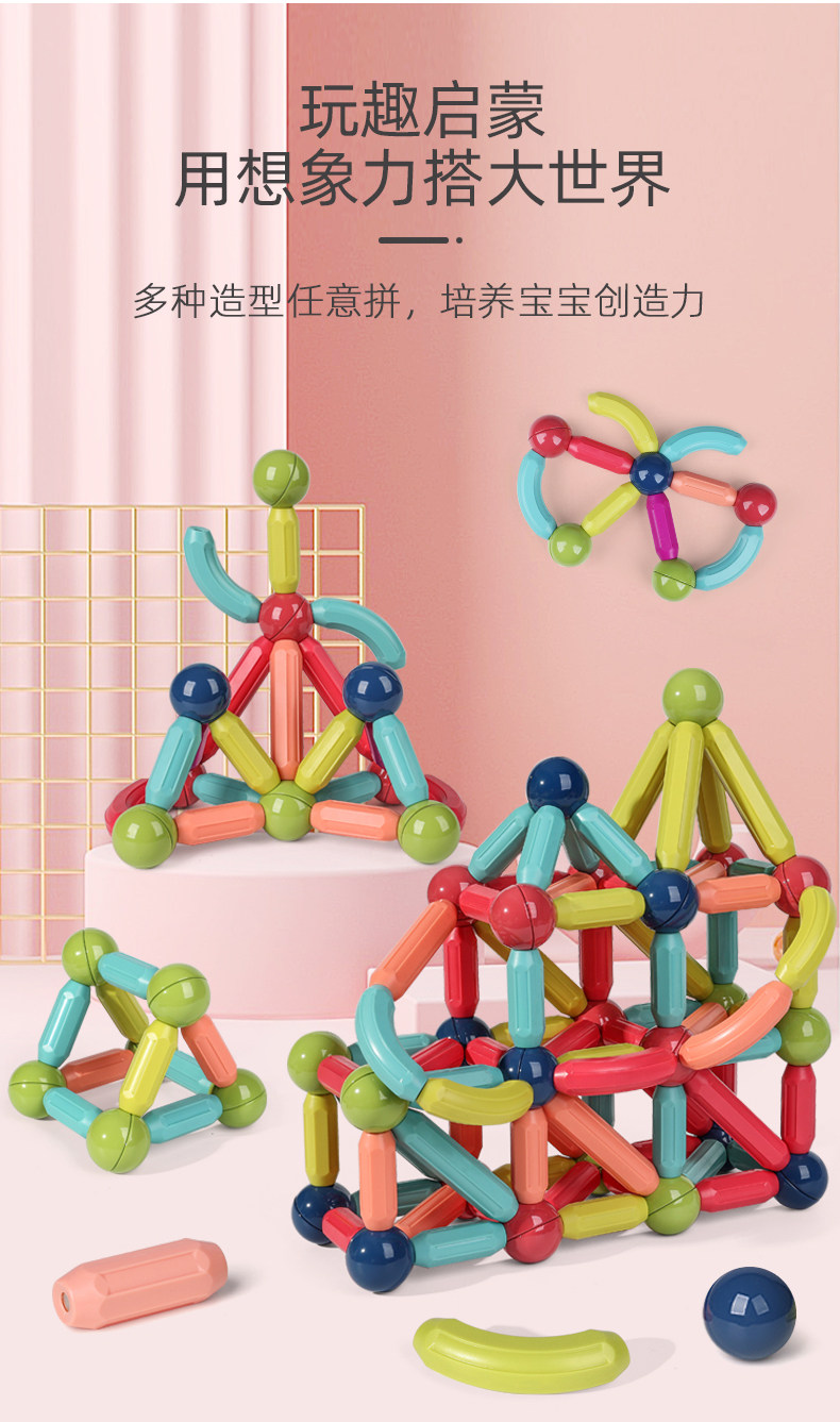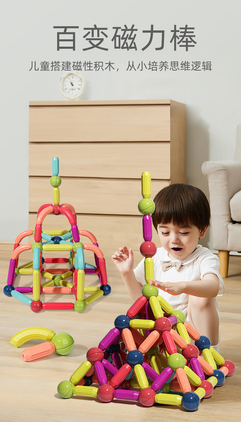 百變磁力棒片男孩女孩2歲寶寶智力拼圖6兒童益智積木拼裝磁鐵玩具
